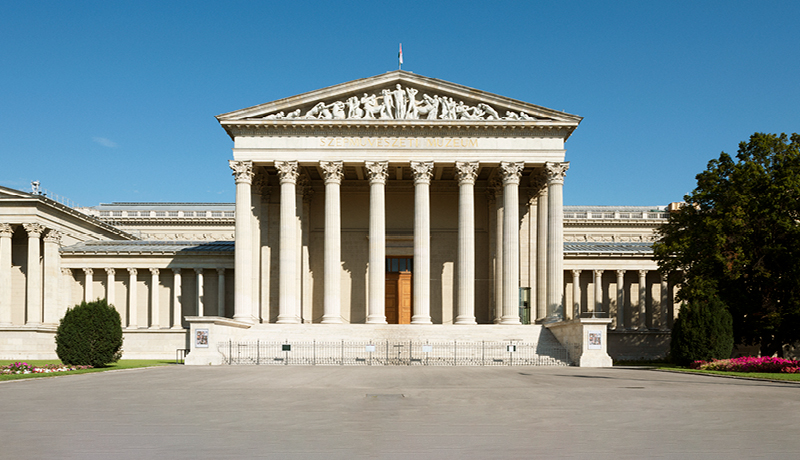 У музеї образотворчого мистецтва зібрано найбільша в Угорщині колекція художніх творів. Основна експозиція складається із шести відділень: Давньоєгипетське, античне мистецтво, старовинні скульптури, відділення графіки та гравюри (роботи Рембрандта, Гої), галерея нових майстрів (Делакруа, Роден, Моне, Мане та Сезанн), галерея старих майстрів (близько 700 полотен з колекції князів Естергазі).