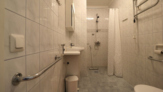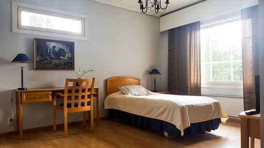 Цей будинок складається з основного будинку з п'ятьма спальнями, літньої спальної хатини, літньої пляжної сауни, приватного піщаного пляжу та барбекю біля озера. Таким чином, він ідеально підходить для сімей та груп друзів, які цінують простору та доступну атмосферу для відпочинку. У головному будинку є п'ять спалень з двома ліжками в кожному. У кожній спальні є ванна кімната з туалетом і душем. У літній час у хатині поруч із головним будинком є одне додаткове ліжко. З хатини є короткий шлях до дверей кухні та доступ до шостої ванної кімнати в будинку. Будівля сауни знаходиться на береговій лінії та має терасу, яка нависає над водою. Це традиційна фінська дров'яна лазня, яка працює з початку травня до кінця жовтня. Вартість оренди, включаючи фінальне прибирання, від 1725 євро на тиждень. Набори постільної білизни та рушників необхідно орендувати для кожної людини за ціною 18 євро з особи.