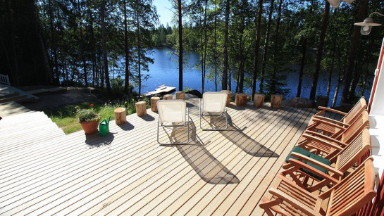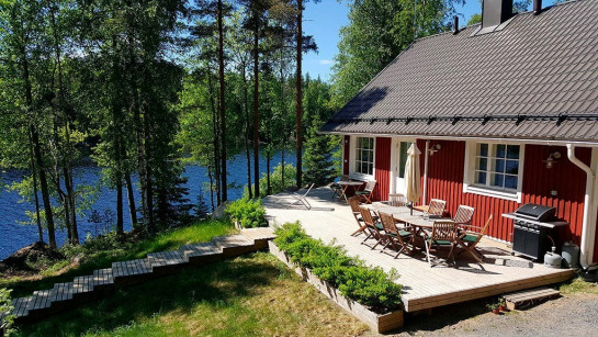 Вілла Віллі – це побудований у 2009 році зроблений з колод двоповерховий котедж на озері Кюювесі. Він розташований на березі тихої затоки серед найкрасивіших краєвидів Озерної Фінляндії. Скалисті пологі береги відмінно підійдуть для купання, як дітей, так і дорослих. Любителі риболовлі без сумніву знайдуть собі тут заняття до душі. А навколишні ліси приємно здивують тих, хто вважає за краще проводити час, збираючи гриби та ягоди. Для дітей на ділянці обладнано майданчик з гойдалками та пісочницею. Котедж призначений для цілорічного розміщення. Взимку тут чудові можливості для підлідного лову та прогулянок на природі. А діти точно прийдуть у захват від катання з гори прямо у дворі котеджу. У будинку електричне опалення (підігрів підлог), камін та додаткова спліт-система. У котеджі дві ізольовані спальні, в кожній з яких по двоспальному ліжку, та лофт з двома односпальними ліжками. На дивані у вітальні може розміститися ще два гості. Крім цього в котеджі є повністю обладнана кухня, сауна, душова кімната та два туалети. На просторому ж балконі котеджу ви можете засмагати, готувати їжу на грилі або просто милуватися прекрасними видами озера Кюювесі. Ціна від 995 євро/тиждень і 380 євро/вихідні. Фінальна збирання входить у вартість. Постільна білизна та рушники – 18 євро/ос. У період з 17.06 по 26.08.2018 мінімальний термін оренди котеджу - один тиждень, з п'ятниці по п'ятницю.