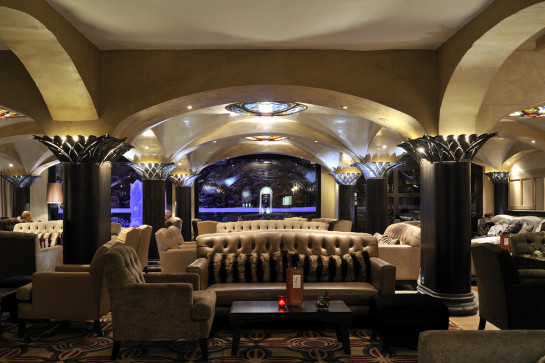 Новий дизайн бару з чудовою стелею у візантійському стилі та зручними кріслами в шоколадних тонах не залишить вас байдужими, якщо ви заглянете випити чашку післяобіднього чаю біля великого каміна або коктейль на завершення насиченого дня під тихі звуки джазу, що служать акомпанементом до чудового видовища сонця.