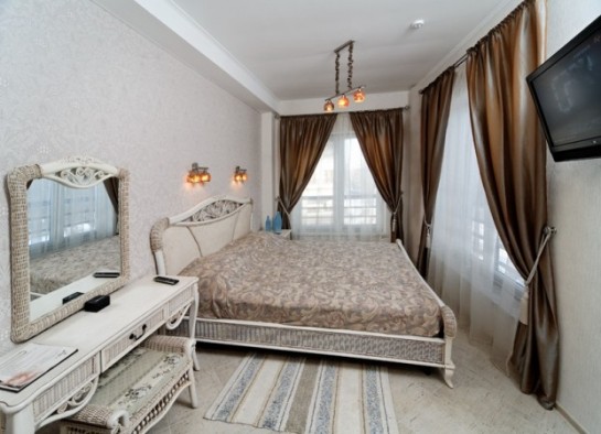3-кімнатний, 2-рівневий "Queen suite apart" | 80-130м2 | 9 | Номер зі зручностями (два санвузли:основний: суміщений з/в, душ, пральна машина, біде, умивальник, фен). У номері: 3 кімнати (спальня №1 – двоспальне ліжко, спальня №2 – два роздільні ліжка, кухня – їдальня, холодильник), набір меблів, телефон, сейф, LCD ТВ, DVD плеєр; інтернет, кабельне телебачення, система обігріву та охолодження повітря. балкон, вид у двір. Розміщення до 6 осіб. |