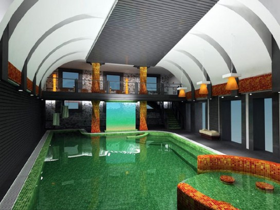 - лазневий комплекс (російська лазня, фінська сауна, римська парна, турецька лазня та хамам)<