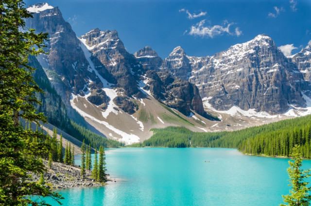 Ми збираємося зафіксувати озеро в Канаді, яке найбільше фотографується: розташоване в мальовничій долині в канадських Скелястих горах, Озеро Морейн створює пейзаж з гір, водоспадів і скель, таких приголомшливих, що це здається сюрреалістичним. Його води неймовірного кольору, яскравого бірюзового відтінку, інтенсивність якого змінюється протягом літа в міру танення льодовиків. Ця поїздка супроводжується відвідуванням покинутого Міста-Примари, що дозволяє уявити себе шукачем удачі під час Золотої лихоманки. Ночівля: готель у Трьох Долинах.